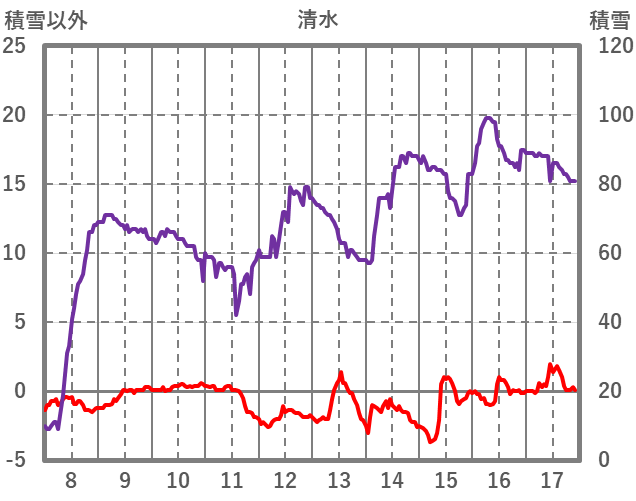 | 日 | 時 | 気温 | 降水 | 風向/風速 | 日照 | 積雪 | 降雪 |