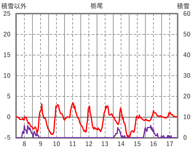 | 日 | 時 | 気温 | 降水 | 風向/風速 | 日照 | 積雪 | 降雪 |