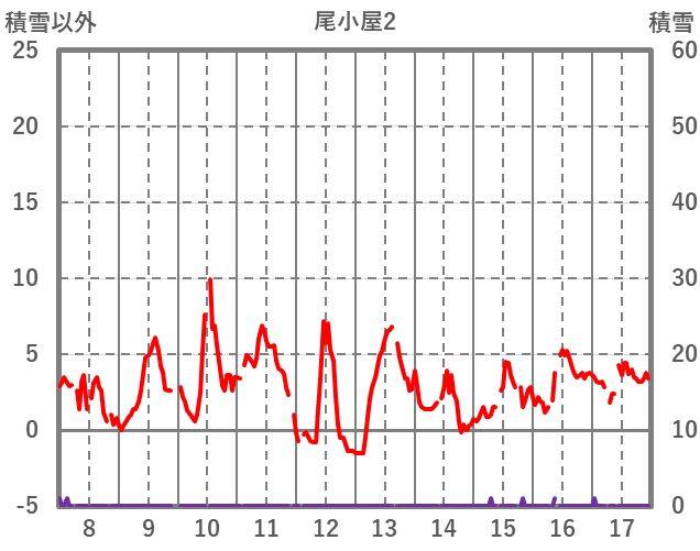 | 日 | 時 | 気温 | 降水 | 風向/風速 | 日照 | 積雪 | 降雪 |