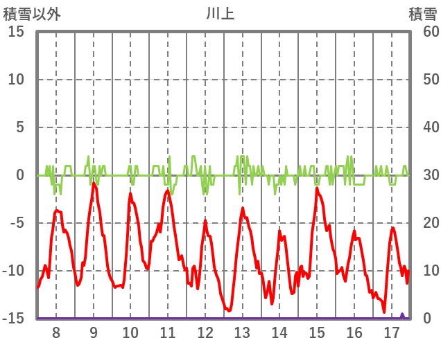 | 日 | 時 | 気温 | 降水 | 風向/風速 | 日照 | 積雪 | 降雪 |