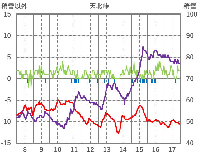| 日 | 時 | 気温 | 降水 | 風向/風速 | 日照 | 積雪 | 降雪 |
