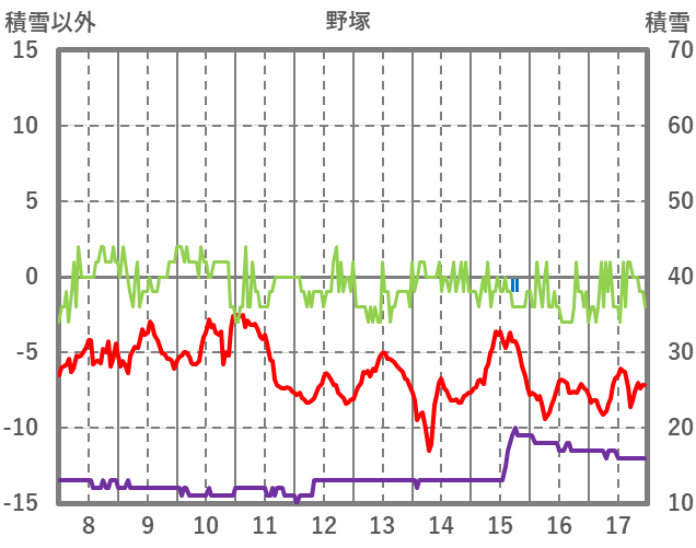 | 日 | 時 | 気温 | 降水 | 風向/風速 | 日照 | 積雪 | 降雪 |