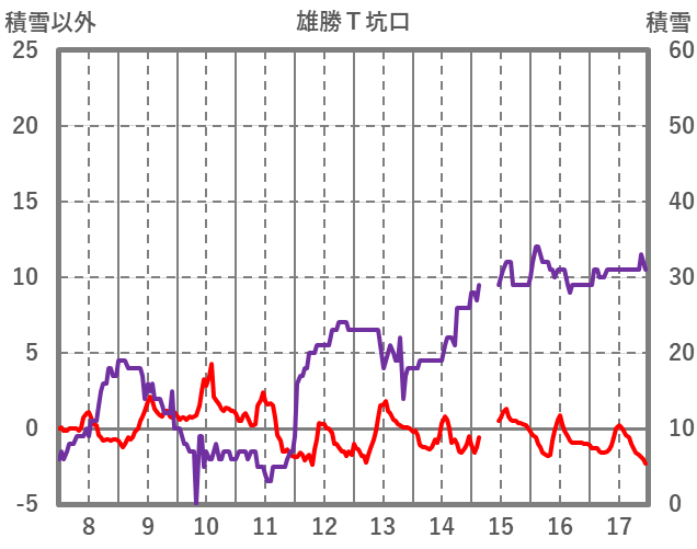 | 日 | 時 | 気温 | 降水 | 風向/風速 | 日照 | 積雪 | 降雪 |