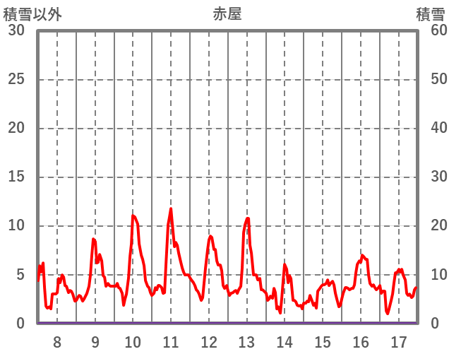 | 日 | 時 | 気温 | 降水 | 風向/風速 | 日照 | 積雪 | 降雪 |