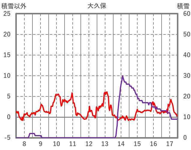 | 日 | 時 | 気温 | 降水 | 風向/風速 | 日照 | 積雪 | 降雪 |