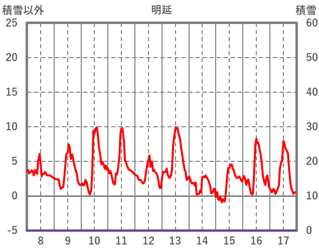 | 日 | 時 | 気温 | 降水 | 風向/風速 | 日照 | 積雪 | 降雪 |
