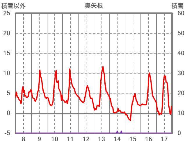 | 日 | 時 | 気温 | 降水 | 風向/風速 | 日照 | 積雪 | 降雪 |