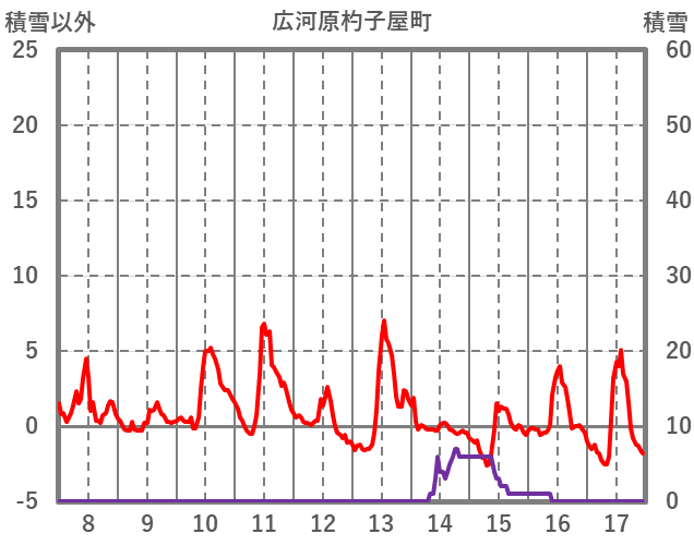 | 日 | 時 | 気温 | 降水 | 風向/風速 | 日照 | 積雪 | 降雪 |