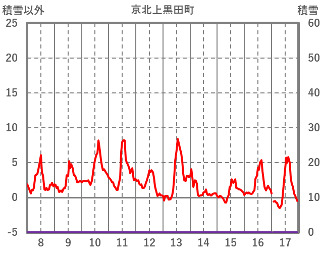 | 日 | 時 | 気温 | 降水 | 風向/風速 | 日照 | 積雪 | 降雪 |