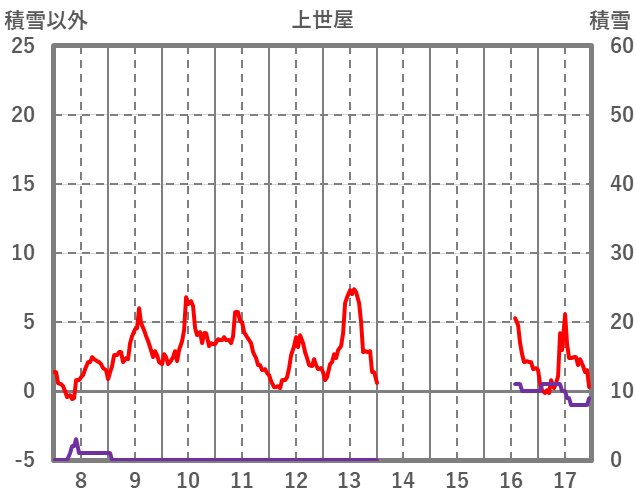 | 日 | 時 | 気温 | 降水 | 風向/風速 | 日照 | 積雪 | 降雪 |