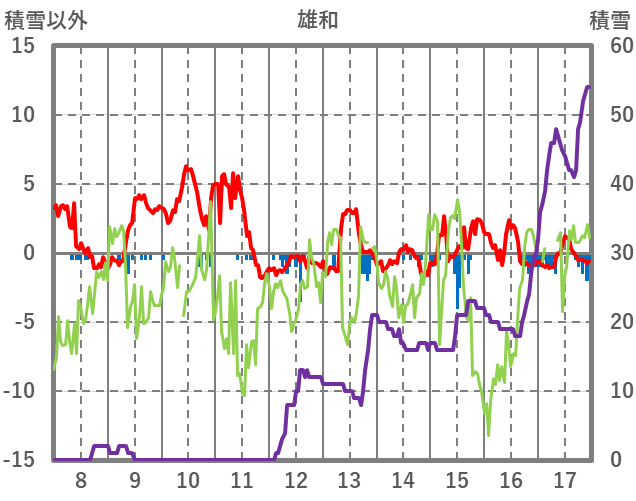 | 日 | 時 | 気温 | 降水 | 風向/風速 | 日照 | 積雪 | 降雪 |