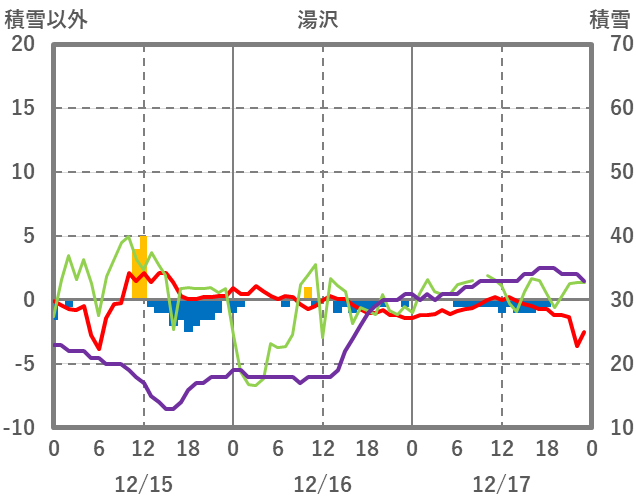 | 日 | 時 | 気温 | 降水 | 風向/風速 | 日照 | 積雪 | 降雪 |