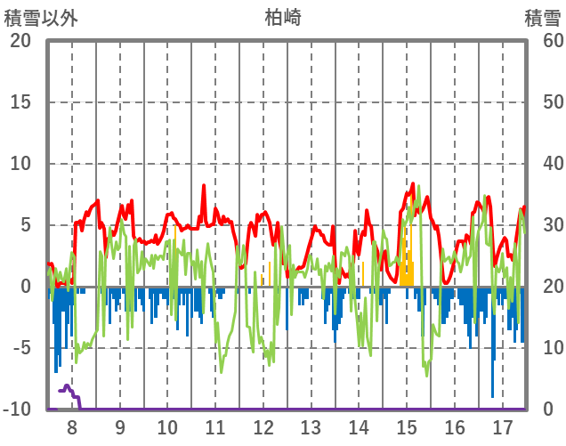 | 日 | 時 | 気温 | 降水 | 風向/風速 | 日照 | 積雪 | 降雪 |