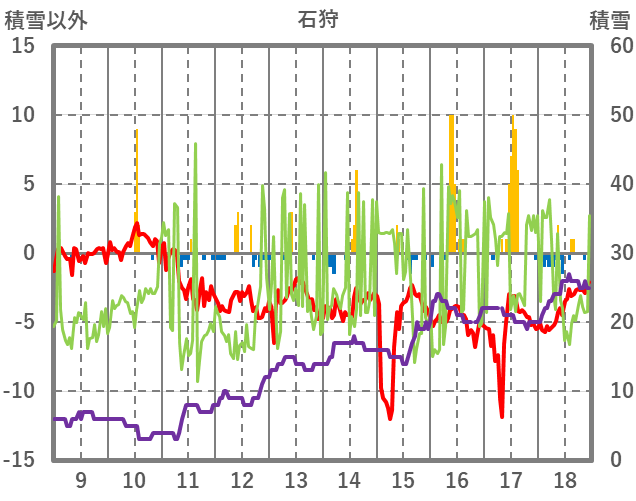 | 日 | 時 | 気温 | 降水 | 風向/風速 | 日照 | 積雪 | 降雪 |