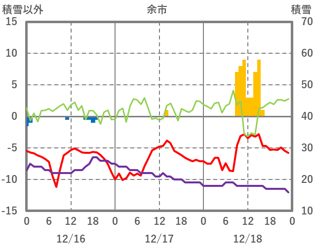 | 日 | 時 | 気温 | 降水 | 風向/風速 | 日照 | 積雪 | 降雪 |