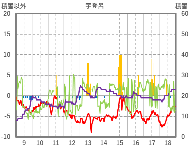 | 日 | 時 | 気温 | 降水 | 風向/風速 | 日照 | 積雪 | 降雪 |
