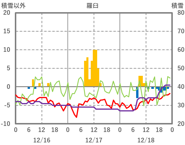 | 日 | 時 | 気温 | 降水 | 風向/風速 | 日照 | 積雪 | 降雪 |