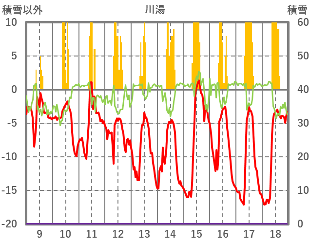 | 日 | 時 | 気温 | 降水 | 風向/風速 | 日照 | 積雪 | 降雪 |