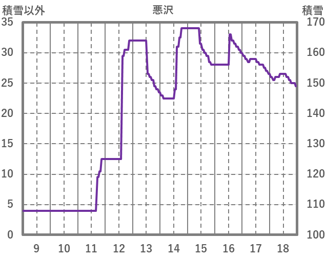 | 日 | 時 | 気温 | 降水 | 風向/風速 | 日照 | 積雪 | 降雪 |