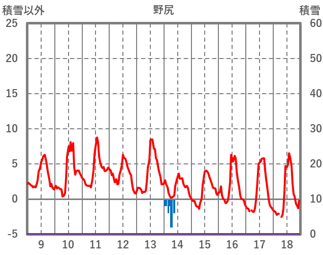 | 日 | 時 | 気温 | 降水 | 風向/風速 | 日照 | 積雪 | 降雪 |