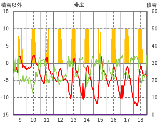 | 日 | 時 | 気温 | 降水 | 風向/風速 | 日照 | 積雪 | 降雪 |