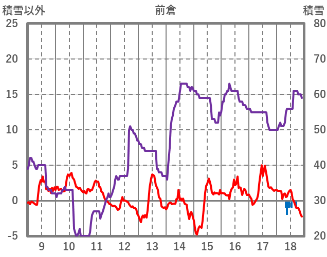 | 日 | 時 | 気温 | 降水 | 風向/風速 | 日照 | 積雪 | 降雪 |