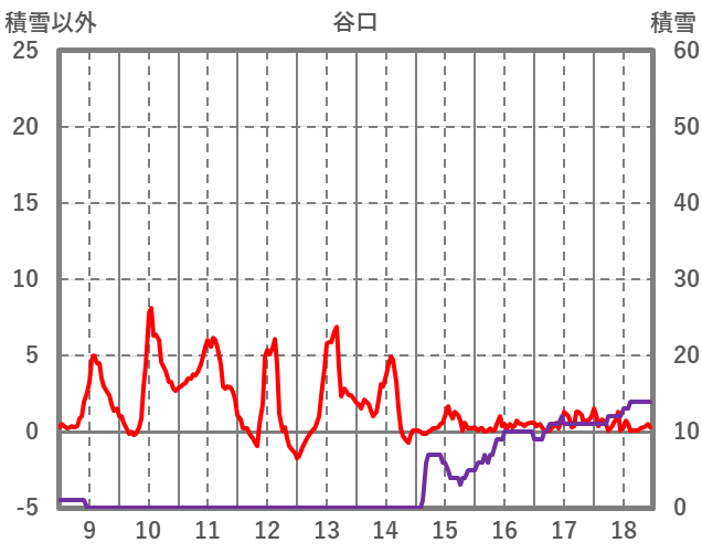 | 日 | 時 | 気温 | 降水 | 風向/風速 | 日照 | 積雪 | 降雪 |
