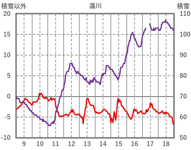 | 日 | 時 | 気温 | 降水 | 風向/風速 | 日照 | 積雪 | 降雪 |