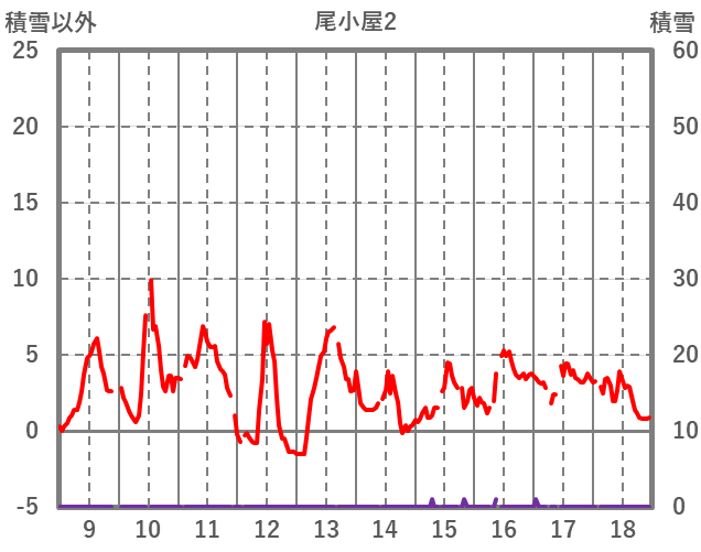 | 日 | 時 | 気温 | 降水 | 風向/風速 | 日照 | 積雪 | 降雪 |