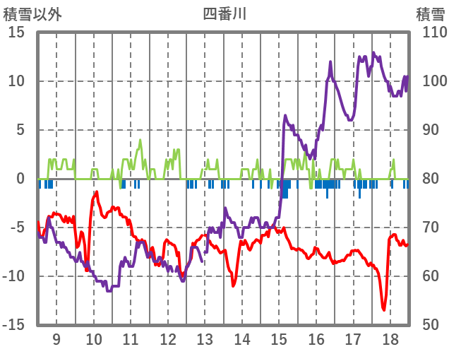 | 日 | 時 | 気温 | 降水 | 風向/風速 | 日照 | 積雪 | 降雪 |