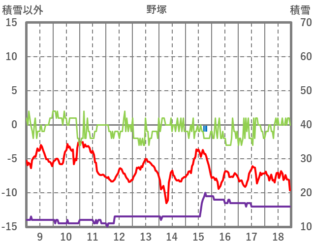| 日 | 時 | 気温 | 降水 | 風向/風速 | 日照 | 積雪 | 降雪 |