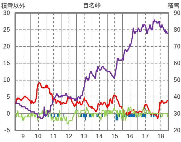| 日 | 時 | 気温 | 降水 | 風向/風速 | 日照 | 積雪 | 降雪 |