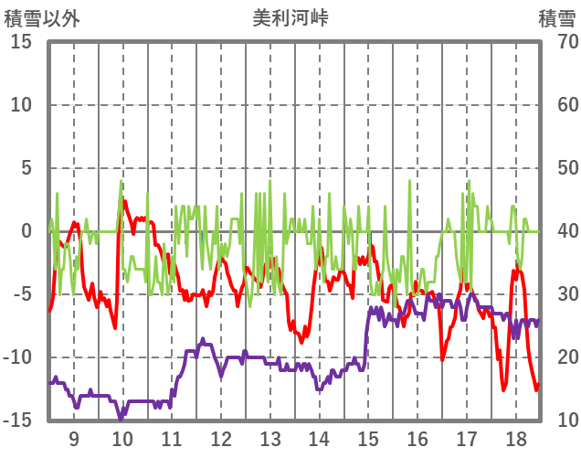 | 日 | 時 | 気温 | 降水 | 風向/風速 | 日照 | 積雪 | 降雪 |