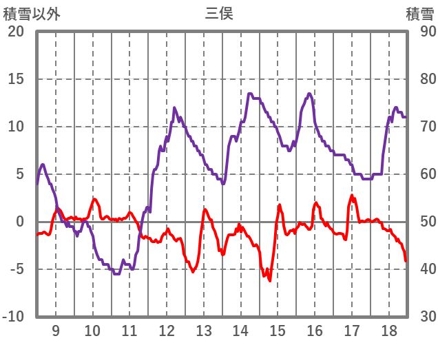| 日 | 時 | 気温 | 降水 | 風向/風速 | 日照 | 積雪 | 降雪 |