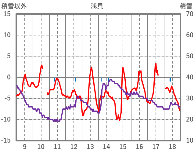 | 日 | 時 | 気温 | 降水 | 風向/風速 | 日照 | 積雪 | 降雪 |
