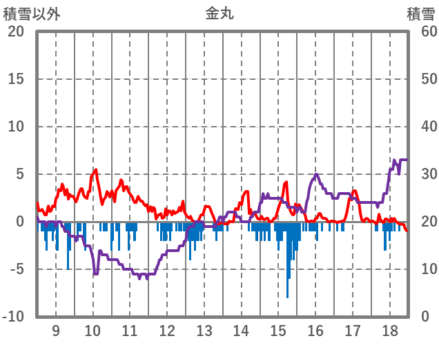 | 日 | 時 | 気温 | 降水 | 風向/風速 | 日照 | 積雪 | 降雪 |