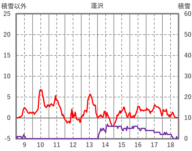 | 日 | 時 | 気温 | 降水 | 風向/風速 | 日照 | 積雪 | 降雪 |