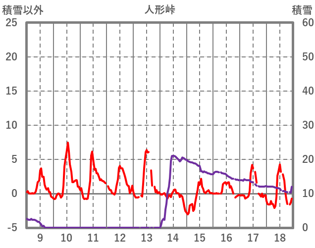 | 日 | 時 | 気温 | 降水 | 風向/風速 | 日照 | 積雪 | 降雪 |