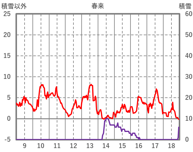 | 日 | 時 | 気温 | 降水 | 風向/風速 | 日照 | 積雪 | 降雪 |