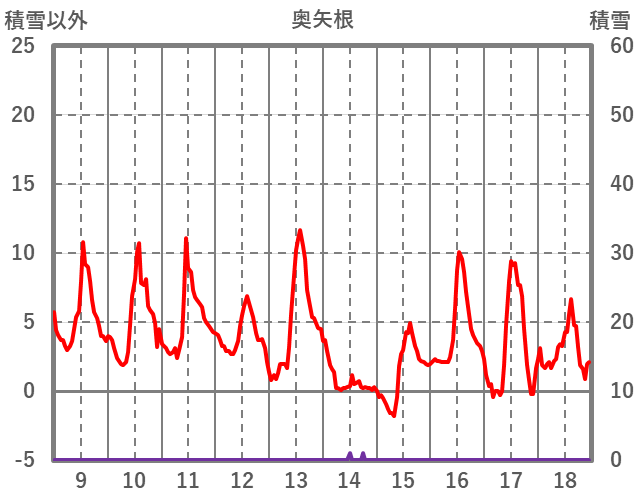 | 日 | 時 | 気温 | 降水 | 風向/風速 | 日照 | 積雪 | 降雪 |