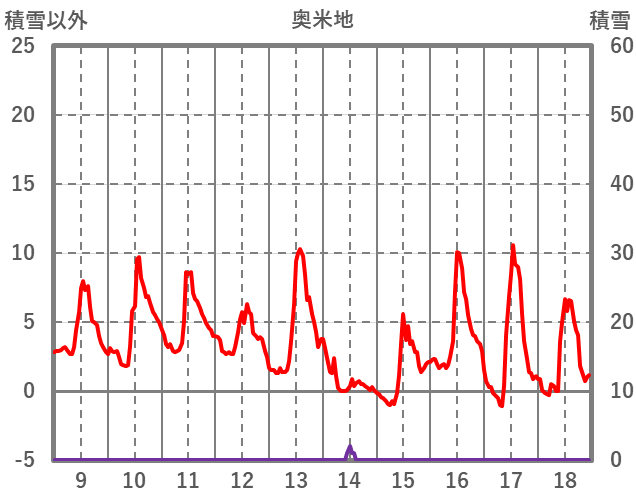| 日 | 時 | 気温 | 降水 | 風向/風速 | 日照 | 積雪 | 降雪 |