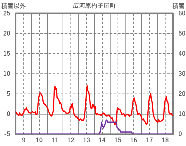 | 日 | 時 | 気温 | 降水 | 風向/風速 | 日照 | 積雪 | 降雪 |