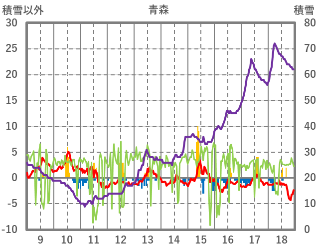 | 日 | 時 | 気温 | 降水 | 風向/風速 | 日照 | 積雪 | 降雪 |