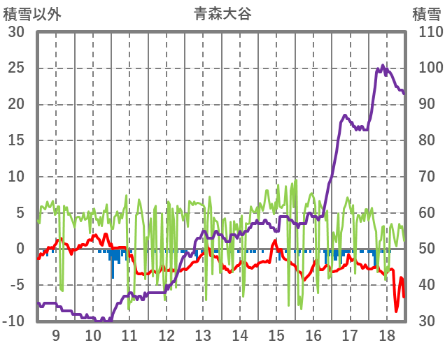 | 日 | 時 | 気温 | 降水 | 風向/風速 | 日照 | 積雪 | 降雪 |