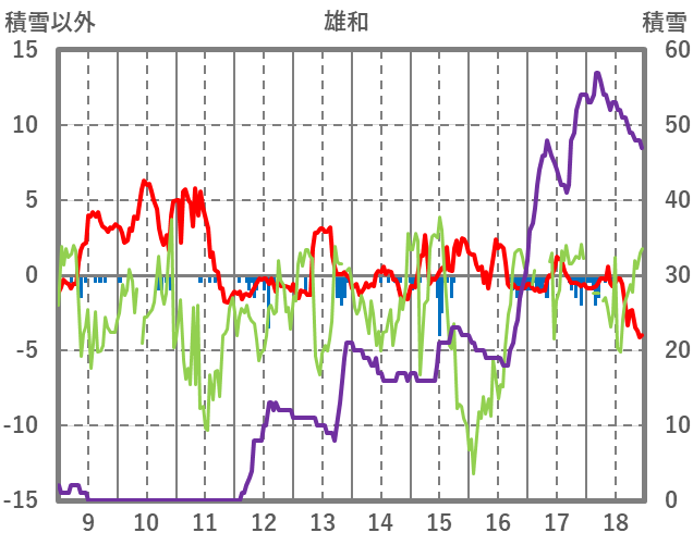 | 日 | 時 | 気温 | 降水 | 風向/風速 | 日照 | 積雪 | 降雪 |