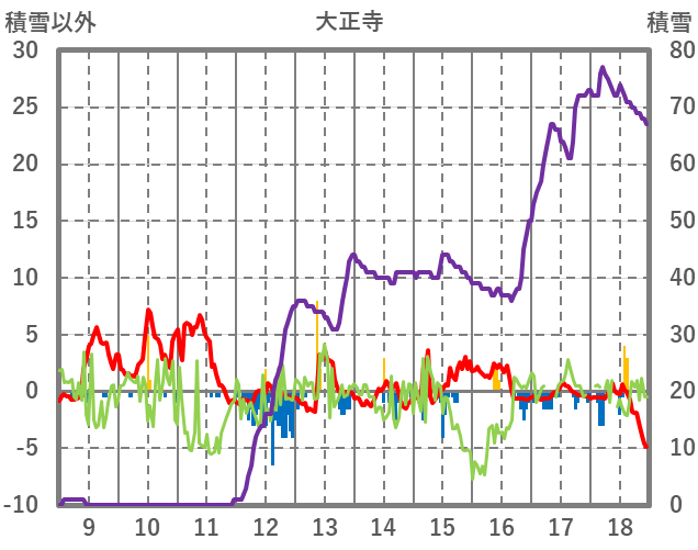 | 日 | 時 | 気温 | 降水 | 風向/風速 | 日照 | 積雪 | 降雪 |