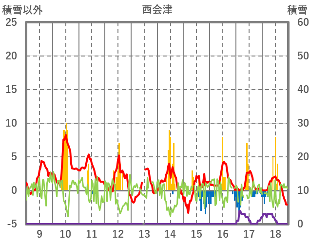 | 日 | 時 | 気温 | 降水 | 風向/風速 | 日照 | 積雪 | 降雪 |