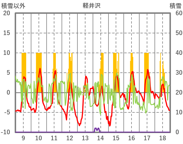 | 日 | 時 | 気温 | 降水 | 風向/風速 | 日照 | 積雪 | 降雪 |