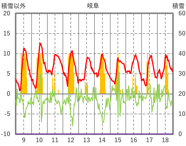 | 日 | 時 | 気温 | 降水 | 風向/風速 | 日照 | 積雪 | 降雪 |