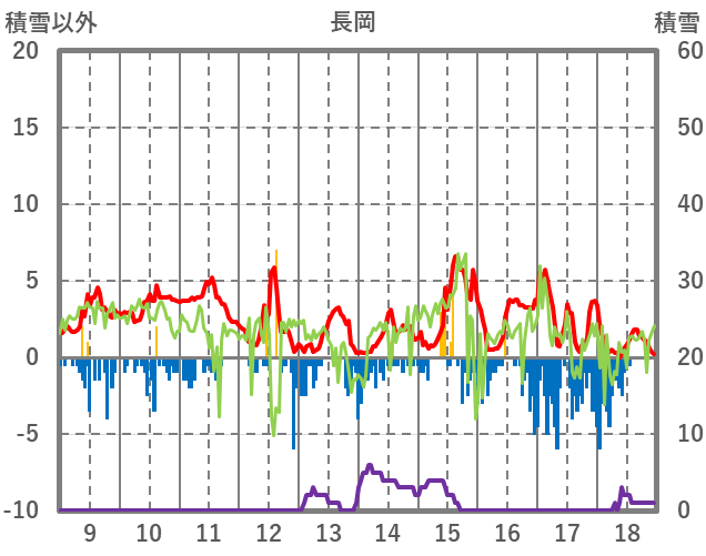 | 日 | 時 | 気温 | 降水 | 風向/風速 | 日照 | 積雪 | 降雪 |